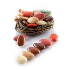 Italian confetti dragées are made up of almonds, encased in a crunchy sugar or chocolate coating, often with different flavours.