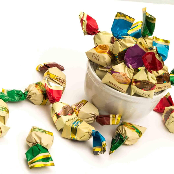 The delicious candies with Mangini creams. In the flavors coffee, hazelnut, walnut and chocolate in packs of 1 kg.